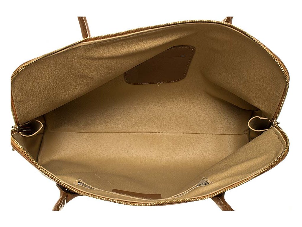 Dámská kabelka značky Ore10. Hnědé barvy se zlatými detaily a dvěma uchy. Zapínání je na zip. Uvnitř jedna menší kapsa na zip.